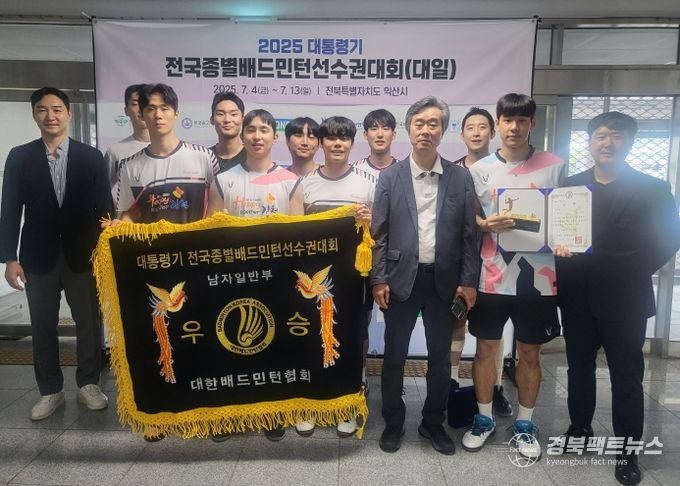 경북팩트뉴스 남유신 기자 | 김천시청 배드민턴단이 지난 7월 4일부터 11일까지 전라북도 익산실내체육관에서 개최된 2025 익산 대통령기 전국종별배드민턴선수권대회에서 남자 단체전 우승에 이어 여자 단식과 복식까지 석권해 대회를 완벽히 제패하며 국내 실업 최강팀을 상대로 기량과 팀워크를 입증했다.