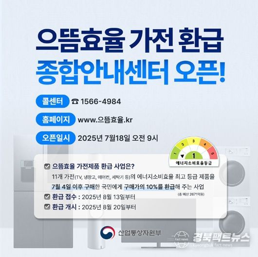 경북팩트뉴스 이경원 기자 | 으뜸효율 가전 환급 종합안내센터 오픈!