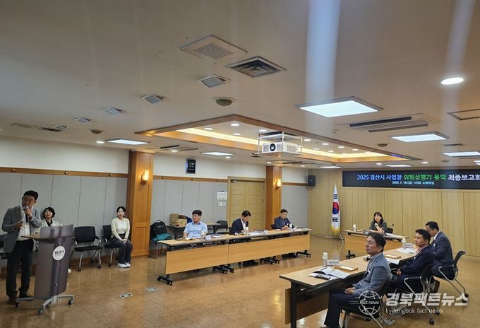 경북팩트뉴스 남유신 기자 | 경산시는 18일 소회의실에서 '2025 경산시 사업장 위험성평가 용역' 최종보고회를 개최했다. 이날 보고회에는 부시장을 비롯해 건설안전국장, 안전총괄과장, 회계과장, 체육진흥과장, 농정유통과장, 환경시설사업소장 등 10여 명의 관계부서장이 참석해 용역 추진 경과와 주요 결과를 공유했다.