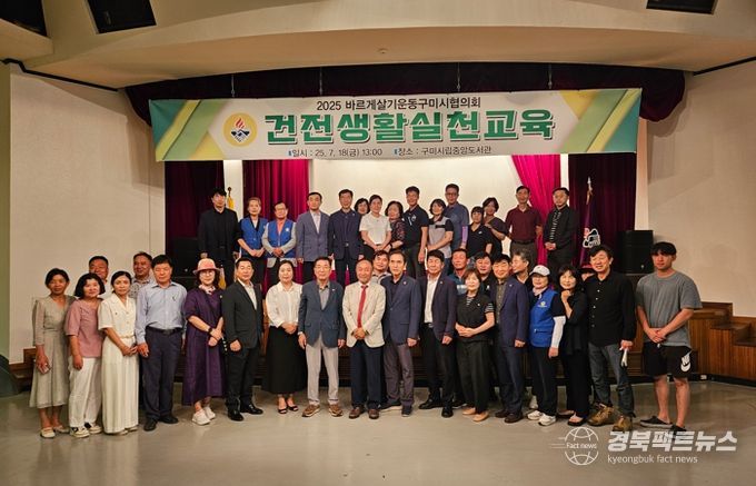 경북팩트뉴스 조현묵 기자 | 구미시는 지난 18일 시립중앙도서관 강당에서 바르게살기운동구미시협의회 주관으로 ‘바르게살기운동 건전생활 실천교육’을 개최했다. 행사에는 협의회원과 시민 등 100여 명이 참석해 바른 삶의 가치와 시민의식을 다졌다.
