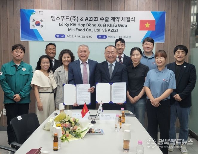 지난해 10월 고령군은 동남아 시장 판로 개척을 위해 관내 10개 업체가 참여한 해외무역사절단을 구성해 베트남과 태국을 방문했다. 그 일정 중 베트남 하노이 수출상담회에서 엠스푸드(주)는 AZIZI(주)와 첫 교류가 있었고,이후 AZIZI측 관계자들이 두 차례에 걸쳐 엠스푸드 공장을 방문해 구체적인 수출에 관한 논의가 진행됐다.