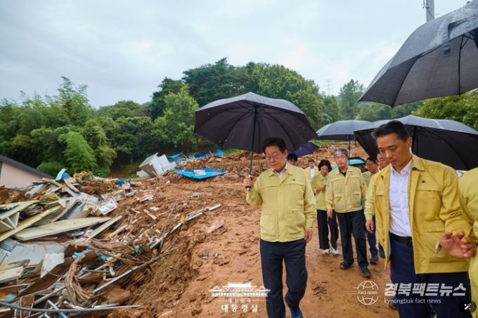 경북팩트뉴스 황혜경 기자 | 이재명 대통령은 21일 오후 기록적인 집중호우로 큰 피해를 입은 경남 산청군을 직접 찾아 피해 복구 상황을 점검했다고 강유정 대변인이 브리핑에서 밝혔다.