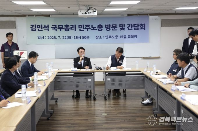 경북팩트뉴스 황혜경 기자 | 김민석 국무총리는 7월 22일 오후 한국노동조합총연맹(한국노총)과 전국민주노동조합총연맹(민주노총)을 방문하여 지도부와 인사를 나누고 환담의 시간을 가졌다.