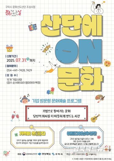 '산단에 ON 문화'는 희망기업 참여신청을 구미문화재단홈페이지를 통해 7월 31일까지 받고 있으며, 15개 내외 기업을 방문할 계획이다.
