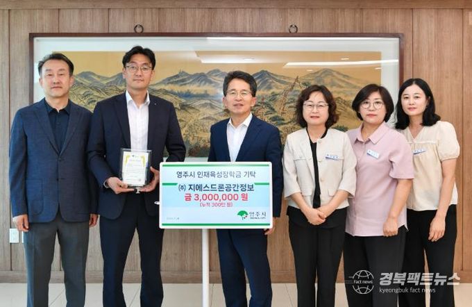 경북팩트뉴스 남유신 기자 | (재)영주시인재육성장학회는 지난 7월 29일, ㈜지에스드론공간정보로부터 지역 인재 육성을 위한 장학금 300만 원을 기탁받았다고 밝혔다.