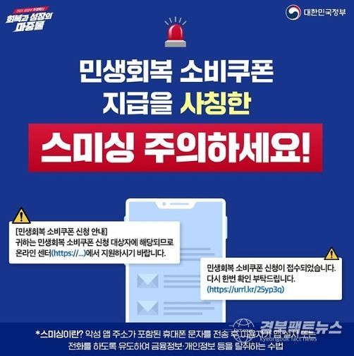 경북팩트뉴스 이경원 기자 | 민생회복 소비쿠폰 지급을 사칭한 스미싱 주의하세요!