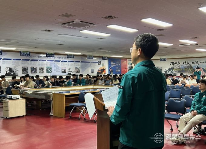 경북팩트뉴스 조현묵 기자 | 구미시는 지난 12일 시청 민방위대피소(을지연습장)에서 '2025 을지연습' 기간 중 재난안전상황실 근무자 등 150여 명을 대상으로 사전교육을 진행했다.