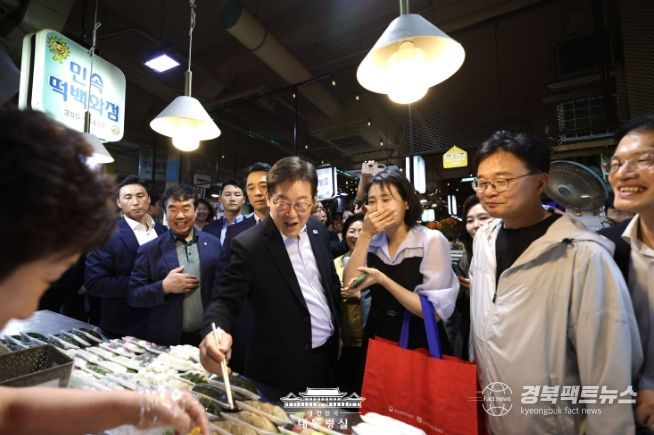 경북팩트뉴스 황혜경 기자 | 이재명 대통령 내외는 영화관람 후 서울 은평구에 위치한 연서시장을 깜짝 방문해 민생회복 소비쿠폰의 체감 효과를 묻고 상인들을 격려했다.