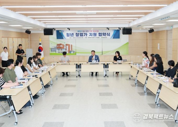 경북팩트뉴스 남유신 기자 | 예천군은 20일, 예천희망키움센터 2층 회의실에서 ‘예천군 청년 창업 키움·돋움사업’을 통해 선정된 14팀의 청년 창업가들이 참여한 가운데 ‘청년창업 키움 돋움사업 지원 협약식’을 개최했다.