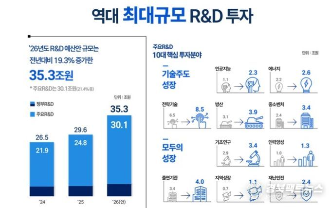 경북팩트뉴스 황혜경 기자 | 이재명 대통령은 22일 "2026년 정부 R&D 예산안은 35조 3000억 원으로, 대한민국 역사상 최대 규모"라고 말했다.