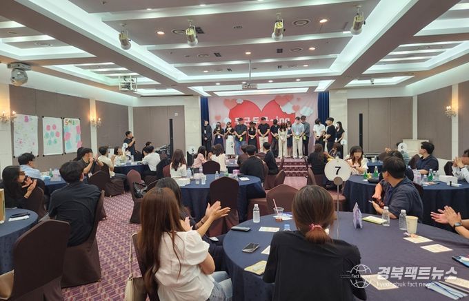경북팩트뉴스 조현묵 기자 | 구미시가 주최하고 함께만드는인구와미래연합회가 주관한 ‘두근두근~ing’ 3기 행사가 지난 23일 호텔 금오산에서 미혼남녀 50명이 참가한 가운데 성황리에 마무리됐다.