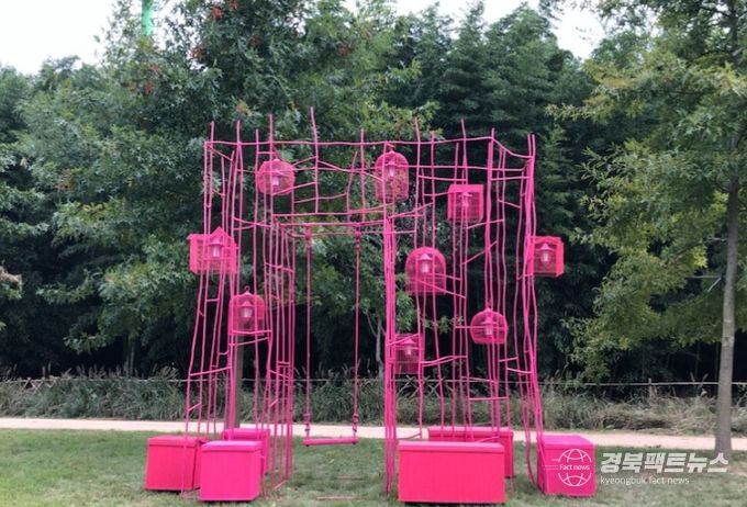 경북팩트뉴스 조현묵 기자 | 구미문화재단(대표이사 이한석)은 ‘거리문화 활성화 사업’의 두 번째 전시로 일상에서 예술을 체험할 수 있는 야외 조형 전시 〈Dwelling in Bliss〉(작가 강효명)를 8월 20일부터 10월 14일까지 구미영상미디어센터(구미시 산책길 75) 야외 공간에서 선보인다.