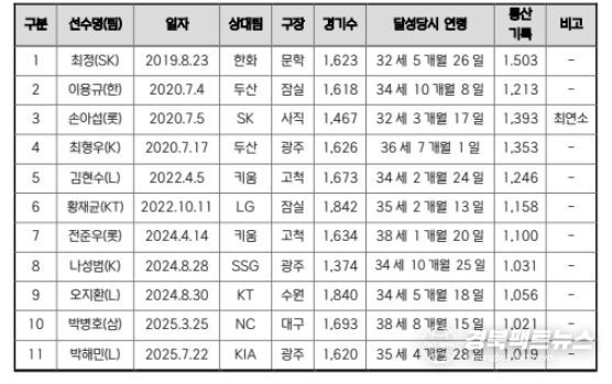강민호는 1,000득점을 달성할 경우, 만 40세의 나이로 종전 이종범(전 KIA)의 기록인 38세 9개월 21일을 넘어 역대 최고령 기록을 새로 쓰게 된다