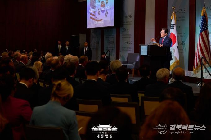 이 대통령은 이날 미국 워싱턴DC의 싱크탱크 전략국제문제연구소(CSIS)에서 한 연설에서 "저와 트럼프 대통령은 '국익중심 실용동맹'의 새 지평을 열어가고자 한다"며 이 같이 밝혔다.