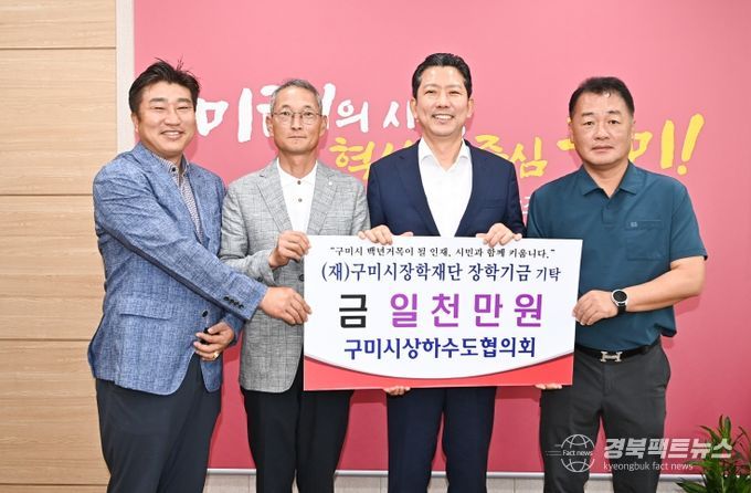 경북팩트뉴스 조현묵 기자 | 구미시상하수도협의회(회장 박연홍)는 지난 26일 선산출장소 시민소통실을 찾아 (재)구미시장학재단(이사장 김장호)에 장학기금 1천만원을 기탁했다.