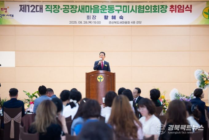 경북팩트뉴스 조현묵 기자 | 구미시는 8월 28일 경상북도새마을회관 4층 강당에서 ‘제12대 직장·공장새마을운동구미시협의회장 취임식’을 열었다. 이날 행사에는 김장호 구미시장을 비롯해 새마을단체장과 관내 기관·단체장 등 100여 명이 참석했다.
