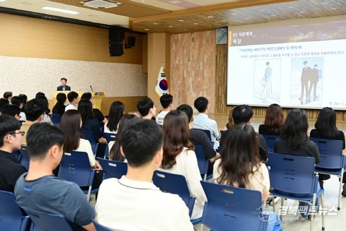 총무과장이 강의를 맡아 진행하여으며, 행정실무·복무·직장예절·공직자의 자세 등 실제 업무에 필요한 내용과 현재 공직사회에서 요구되는 현실적인 주제를 중심으로 다루었다. 특히 실무에서 자주 틀리는 업무규정, 생활과 밀접한 휴가·휴직제도, 공직생활에서 간과할 수 없는 징계사항을 비롯해 직장 내 배려와 협업 등 조직문화와 관련된 주제를 포함하여 기초실무에서 조직문화 전반까지 폭넓게 교육했다.