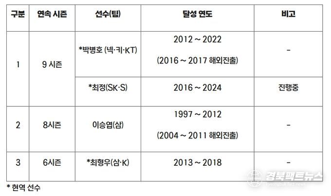 현재 KBO 리그 최다 연속 시즌 20홈런 기록은 삼성 박병호와 최정 두 명이 가지고 있는 9시즌 연속이다. 8월 30일 현재 시즌 18개의 홈런을 기록 중인 최정은 앞으로 2개의 홈런을 추가할 경우, 10시즌 연속 20홈런을 달성하며 이 부문 단독 1위에 오르게 된다.