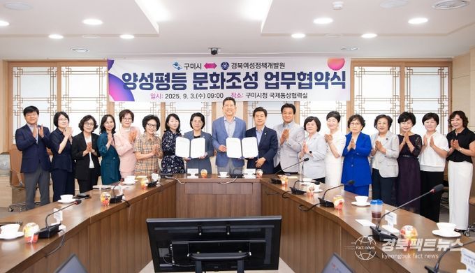 경북팩트뉴스 조현묵 기자 | 구미시는 지난 3일 시청 국제통상협력실에서 경북여성정책개발원(원장 하금숙)과 ‘양성평등한 지역사회 환경 조성’을 위한 업무협약을 체결했다.