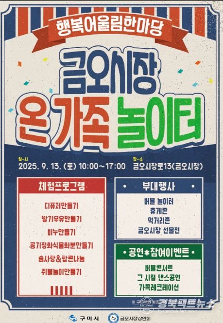 경북팩트뉴스 조현묵 기자 | 구미시는 민족 최대 명절인 추석을 맞아 지역 전통시장의 활기를 되살리고 시민들에게 다양한 볼거리와 체험을 제공하기 위해 '2025년 고향시장 행복어울림마당'을 연다.