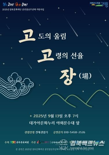 고령군(군수 이남철)는 “유서 깊은 지산동 고분군을 배경으로 열릴 고고장은 우리 전통 음악의 멋과 감동을 나누는 소중한 무대”라며, “자연과 문화가 어우러지는 이번 공연을 통해 진정한 쉼의 시간을 누리시길 바란다.”라고 전했다.