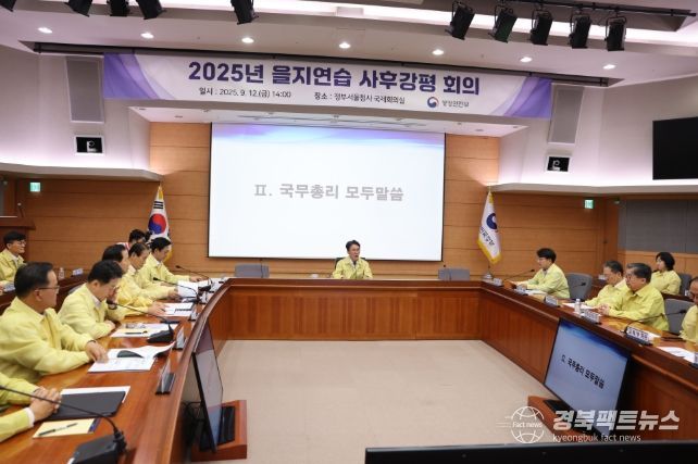 경북팩트뉴스 황혜경 기자 | 김민석 국무총리는 9월 12일 오후 정부서울청사에서 중앙행정기관장, 시·도지사 등 150명이 참석한 가운데 2025년 을지연습 사후강평회의를 주재했다.