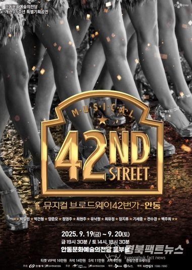 경북팩트뉴스 남유신 기자 | 안동문화예술의전당은 개관 15주년을 맞아 특별기획 공연으로 뮤지컬 '브로드웨이 42번가'를 선보인다. 공연은 오는 9월 19일부터 20일까찌 양일간 웅부홀에서 총 3회 진행된다.