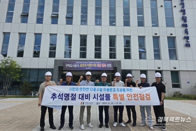 경북팩트뉴스 조현묵 기자 | 구미도시공사는 다가오는 추석 연휴를 앞두고 시민들이 안전하고 쾌적하게 공공시설을 이용할 수 있도록 9월 16일부터 9월 26일까지 공영주차장, 체육시설, 휴양림, 캠핑장 등 주요 다중이용시설을 대상으로 특별 안전점검을 실시한다.