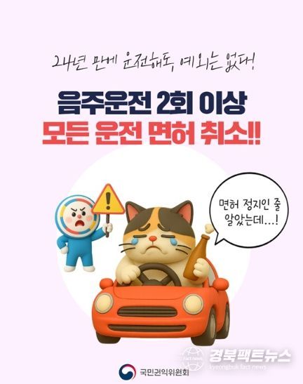 음주운전 2회 이상 모든 운전 면허 취소!!
