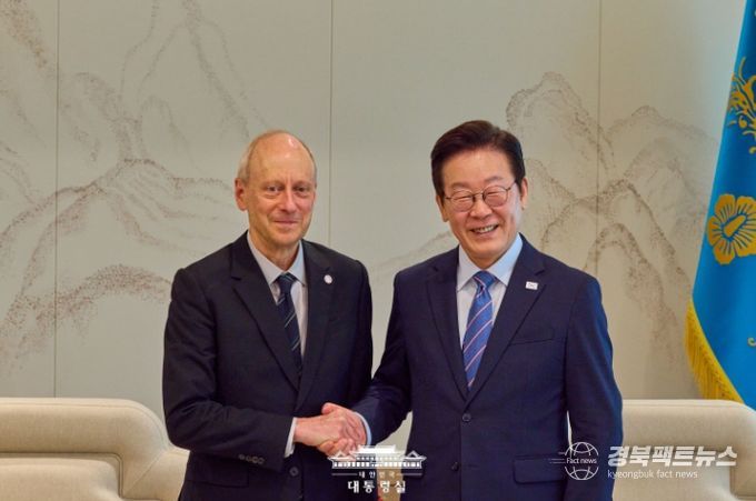 경북팩트뉴스 황혜경 기자 | 이재명 대통령은 오늘 오후 집무실에서 '정의란 무엇인가'의 저자인 마이클 샌델 미국 하버드대 교수를 접견했다.