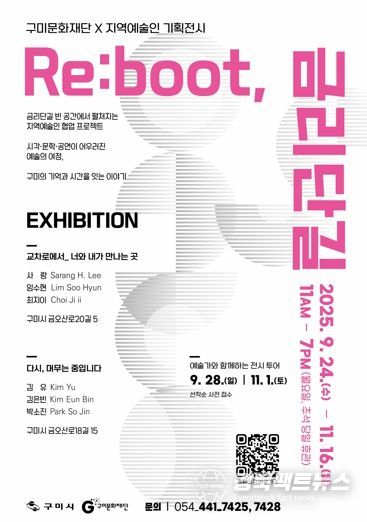 경북팩트뉴스 조현묵 기자 | (재)구미문화재단은 지역 예술인들과 협업하여 구미의 대표 공간 중 하나인 금리단길을 새로운 시각으로 조명하는 'Re:boot, 금리단길' 전시를 개최한다.
