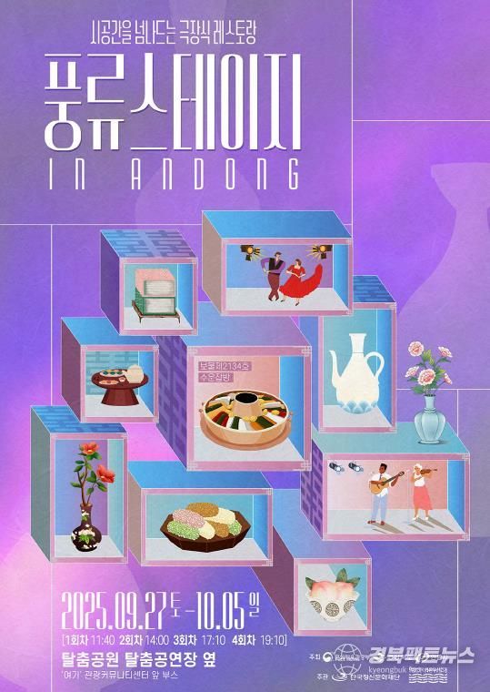 경북팩트뉴스 남유신 기자 | 안동시와 한국정신문화재단은 대한민국 문화도시 조성사업의 일환으로 '풍류 스테이지 in Andong' 극장식 레스토랑을 오는 9월 27일부터 10월 5일까지 안동국제탈춤페스티벌 행사장에서 선보인다.