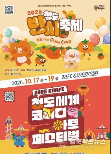 경북팩트뉴스 남유신 기자 | 청도군 은 모두가 함께 웃고 즐기는 축제, 2025 청도반시축제 및 청도세계코미디아트페스티벌이 오는 10월 17일부터 19일까지 3일간 청도야외공연장 일원에서 개최한다고 밝혔다.