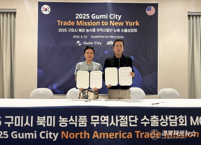 경북팩트뉴스 조현묵 기자 | 구미시가 9월 22일부터 28일까지 미국 뉴욕과 캐나다 벤쿠버에 ‘2025 구미 농식품(G-Food) 시장개척단’을 파견하고‘G-Food’의 글로벌 시장 진출을 본격화했다.