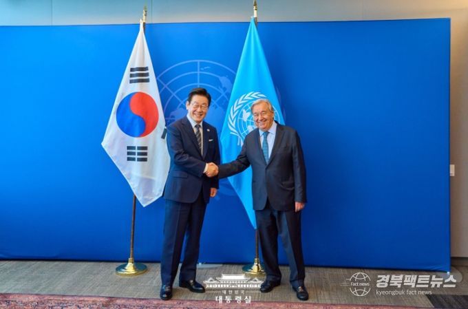 경북팩트뉴스 황혜경 기자 | 제80차 유엔총회 참석으로 대한민국의 국제사회 귀환을 선언한 이재명 대통령은 안토니우 구테레쉬 유엔 사무총장과의 면담에 이어 우즈베키스탄 대통령 및 체코 대통령과 취임 후 첫 정상회담을 갖는 등 외교의 폭을 넓혀가는 모습이다.