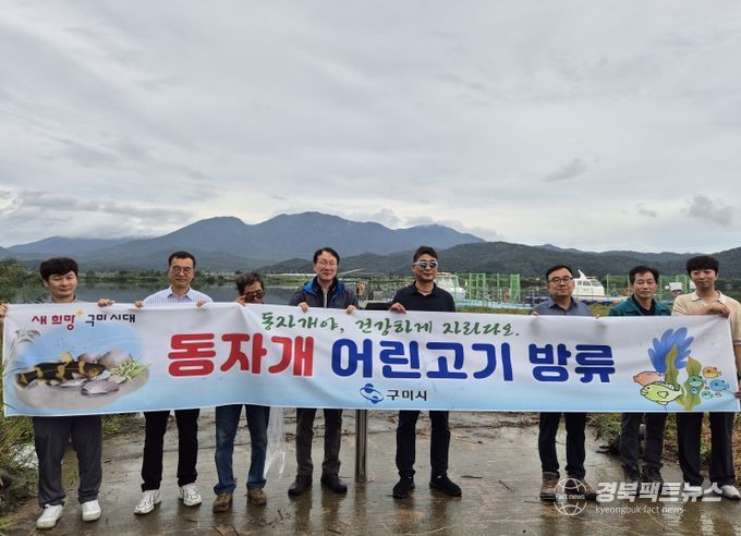 경북팩트뉴스 조현묵 기자 | 구미시는 지난 25일 선산읍 독동리 낙동강 구미보 상류 환경감시선 선착장에서 낙동강 어업인 등이 참여한 가운데 동자개 치어 5만3천 미를 방류했다.