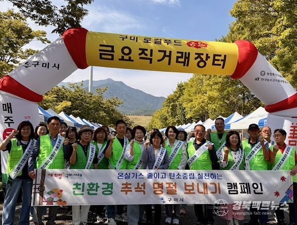 경북팩트뉴스 조현묵 기자 | 구미시는 민족 최대 명절 추석을 맞아 지난 26일 금요직거래장터(금오산대주차장 제6주차장)에서 자연보호구미시협의회 회원 20여 명과 함께 ‘친환경 추석 명절 보내기 캠페인’을 전개했다.
