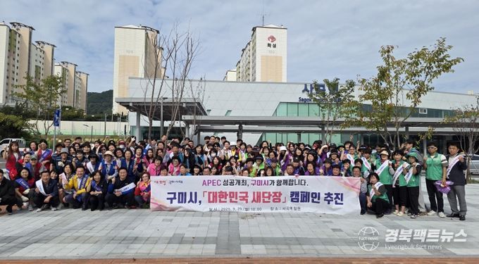 경북팩트뉴스 조현묵 기자 | 구미시는 지난 29일 사곡역 일원에서 ‘대한민국 새단장’ 캠페인을 전개하며 추석 명절과 10월 APEC 정상회의를 앞두고 도시환경 정비에 나섰다. 이번 행사에는 행정안전국장을 비롯해 지역 도·시의원, 이통장협의회, 주민단체 등 150여 명이 참여해 성황을 이뤘다.