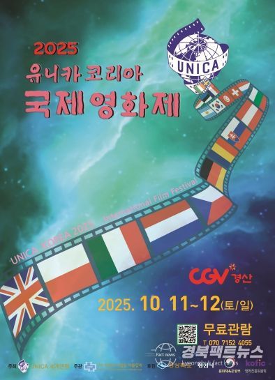 경북팩트뉴스 남유신 기자 | 경산시에서는 2025 유니카 코리아 국제영화제(2025 UNICA KOREA International Film Festival)가 10월 11일과 12일 양일간 CGV 경산(3관)에서 개최된다고 밝혔다.