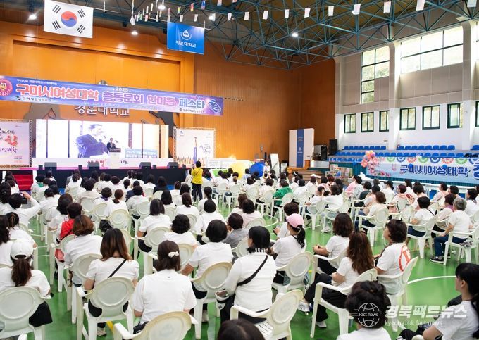 경북팩트뉴스 조현묵 기자 | 구미시는 9월 30일 경운대학교 실내체육관에서 구미시여성대학 수강생과 총동문회 회원 등 200여 명이 참석한 가운데 ‘2025년 구미시여성대학 총동문회 한마음 페스타’를 열었다. 이번 행사는 회원 간 교류와 협력을 강화하고 지역 발전의 주역으로서 결속을 다지는 자리로 마련됐다.