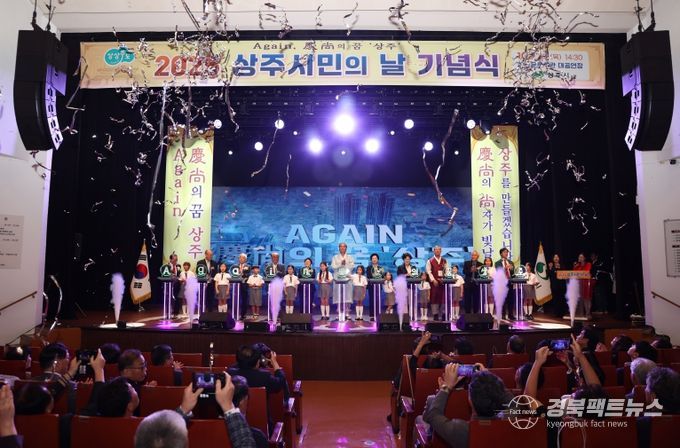 경북팩트뉴스 남유신 기자 | 상주시는 Again, 慶尙의 꿈 ‘상주’를 주제로 한 시민의 날 기념식을 10월 2일 상주문화회관 대공연장에서 개최했다. 상주시민의 날(매년 10월 12일)을 앞두고 개최된 이날 기념식에는 상주시 노인회장과 읍면동 분회장 등 지역 원로들과, 각급 기관·단체장, 출향인 등 500여 명의 시민이 함께해 Again, 慶尙의 꿈의 실현을 향한 염원을 한데 모았다.