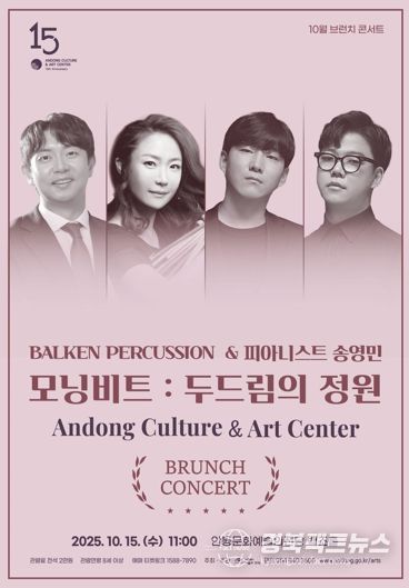 경북팩트뉴스 남유신 기자 | 안동문화예술의전당은 매월 둘째 주 수요일, 클래식 애호가들을 위한 감성 콘서트 시리즈인 ‘브런치 콘서트’를 꾸준히 선보이며 지역 문화 활성화에 앞장서고 있다. 10월의 브런치 콘서트, '모닝비트: 두드림'이 오는 10월 15일 오전 11시, 안동문화예술의전당 백조홀에서 열린다.