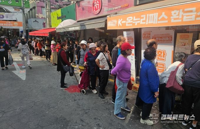 경북팩트뉴스 조현묵 기자 | 구미시는 전통시장 활성화와 지역경제 회복을 위해 추진 중인 '2025 K-온누리패스(온누리상품권 환급)' 행사가 시민들의 큰 호응 속에 활기를 띠고 있다고 밝혔다. 이번 행사는 9월 25일부터 11월 9일까지 구미새마을중앙시장, 문화로ㆍ중앙로 동문상점가 등 지정 점포에서 운영된다.