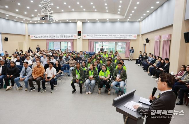 경북팩트뉴스 남유신 기자 | 청도군은 본격적인 가을철 농번기를 앞두고 청도군에 입국한 외국인 계절근로자들의 안정적인 정착을 돕고, 고용농가와의 상호 신뢰를 다지기 위해 지난 10월 16일 농업기술센터 3층 대회의실에서 2025년 하반기 외국인 계절근로자 입국환영식을 개최했다.