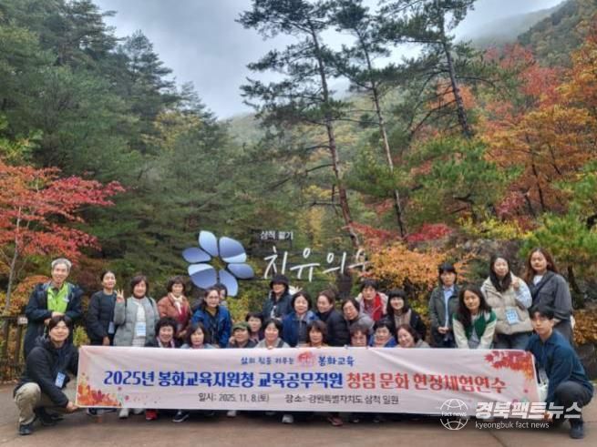 봉화교육지원청 관계자는 “이번 청렴현장연수를 통해 직원들이 일상 속에서도 청렴을 생활화하고, 지역사회에 신뢰받는 교육행정을 실현해 나가길 기대한다”고 말했다.