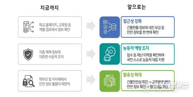 ‘우리학교 365’ 개통으로 학교시설 안전 정보를 둘러싼 지금까지의 모습은 다음과 같이 변화할 것으로 보인다.