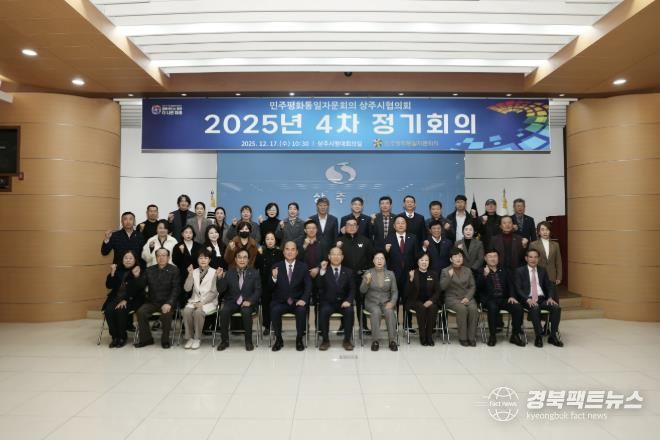 경북팩트뉴스 남유신 기자 | 민주평화통일자문회의 상주시협의회는 12월 17일 오전 10시 30분 상주시청 대회의실에서 상주시장(대행기관장), 자문위원 등 50명이 참석한 가운데 ‘화해·협력의 남북관계 재정립을 위한 정책방향’을 주제로 2025년 4분기 정기회의를 개최했다.