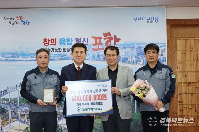 이날 이강덕 이사장은 “㈜SIMPAC이 오랜 기간 변함없이 장학금을 기탁해 주신 데 대해 깊이 감사드린다”며 “기탁해 주신 장학금은 지역 인재들이 학업과 꿈을 이어가는 데 소중히 활용하겠다”고 전했다.