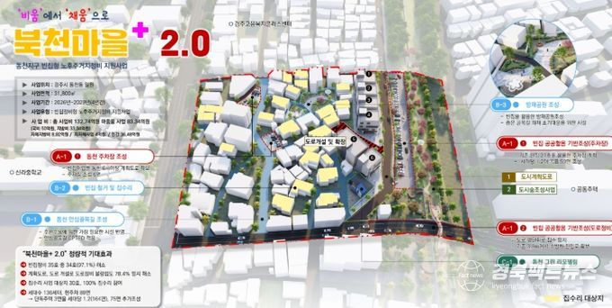 경주시는 빈집이 밀집된 북천마을을 중심으로 주거환경 개선과 생활 인프라 확충, 공동체 회복을 목표로 ‘북천마을 플러스 2.0 - 비움에서 채움으로’라는 비전 아래 공모에 참여해 최종 선정됐다.