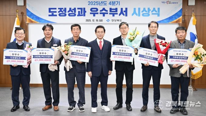 경북팩트뉴스 남유신 기자 | 경상북도는 19일 호국실에서 2025년 4분기 동안 탁월한 성과를 거둔 6개 부서를 ‘우수부서’로 선정해 시상했다.